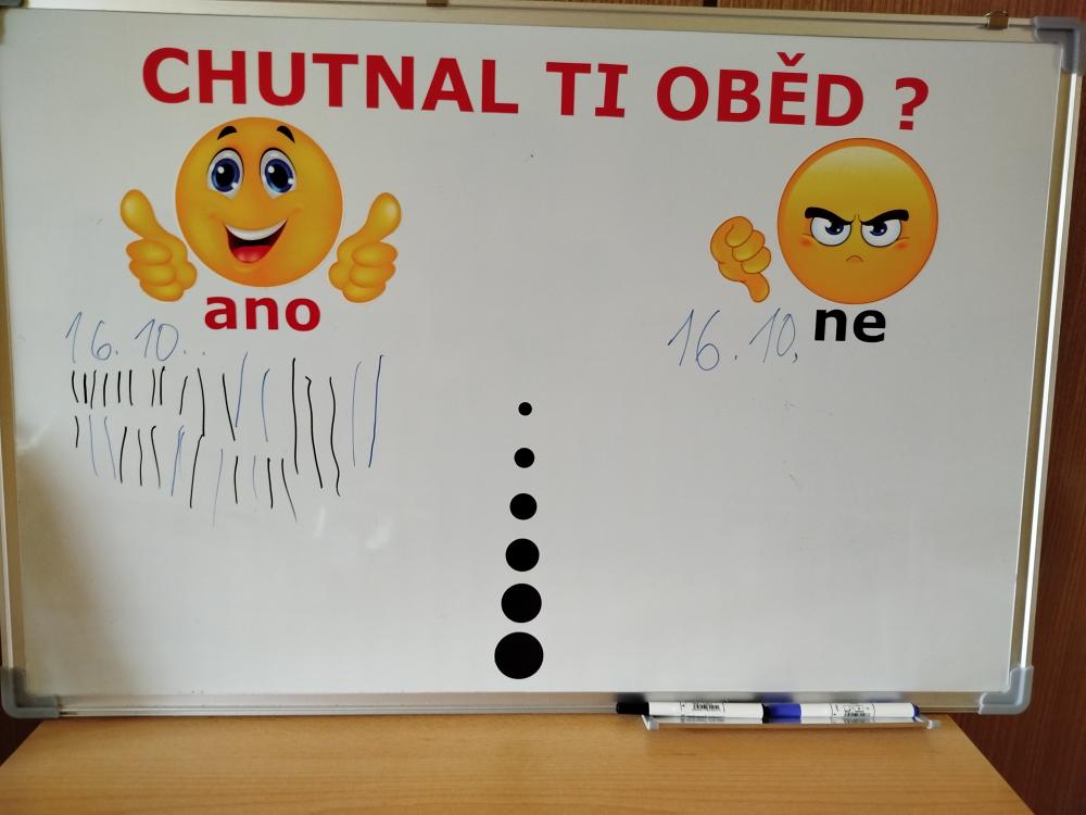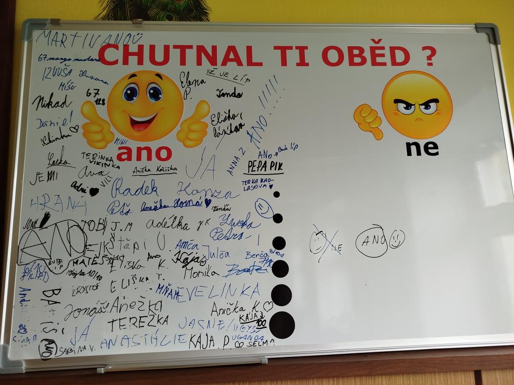 Pro spokojenost našich strávníků jsou vytvořeny tabule, kde se mohou vyjádřit se spokojeností obědů! Samozřejmě ve vší slušnosti. Takto dopadlo hodnocení smaženého kuřecího řízku s bramborovou kaší...Tabule jsou umístěny jak ve velké, tak v malé jídelně :D